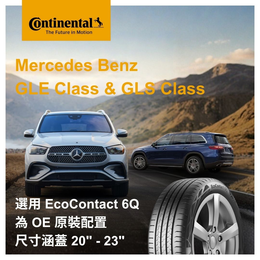 Mercedes Benz is again partnering with Continental tyres for its GLE and GLS models. Both SUVs come factory-fitted with the EcoContact 6 Q tire, which has been specifically designed for efficient and quiet driving and also impresses thanks to its high mileage and reliable grip.
