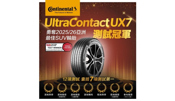 UltraContact UX7 was crowned champion in Top Tire Review' s 2025/26 “Best SUV Tire in Asia”TestDecember 01, 2025UltraContact UX7 was crowned champion in Top Tire Review' s 2025/26 “Best SUV Tire in Asia”Test UltraContact UX7 was crowned champion in Top Tire Review' s 2025/26 “Best SUV Tire in Asia” test, underscoring the brand’s technological leadershi...View More -